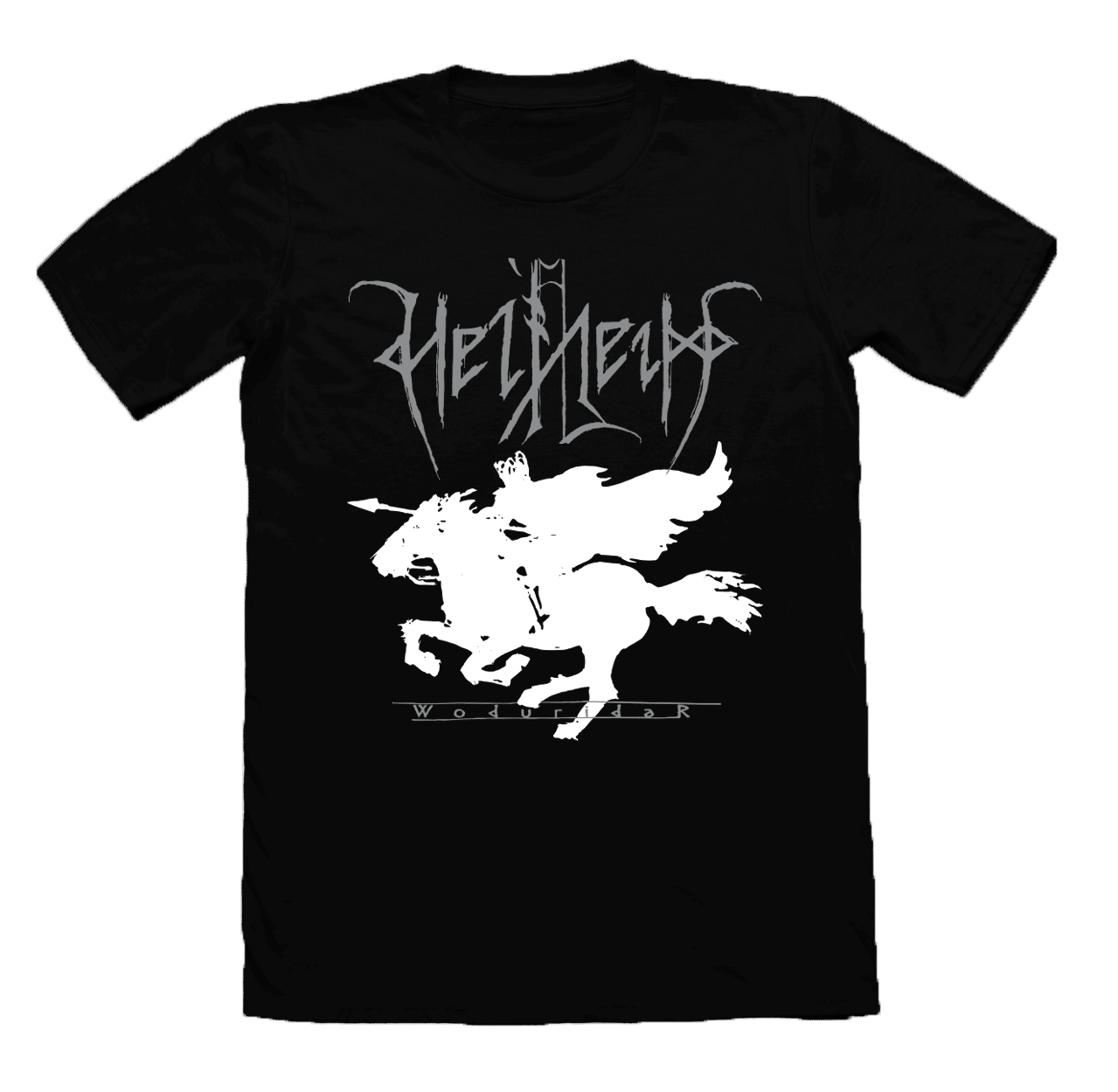 Black Helheim "WoduridaR" t-shirt. The t-shirt is available in men's sizes S-3XL. T-shirt brand: Gildan Softstyle.